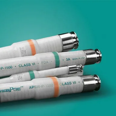 Advantapure has great options for process hoses for Biotech Manufacturing. Our custom hose shop can add custom labels via etching on the hose collar, color coding with our over molded Advantalabel, or even RFID technology using a bar code reader to identify and track hose cycle life - contact us to learn more!